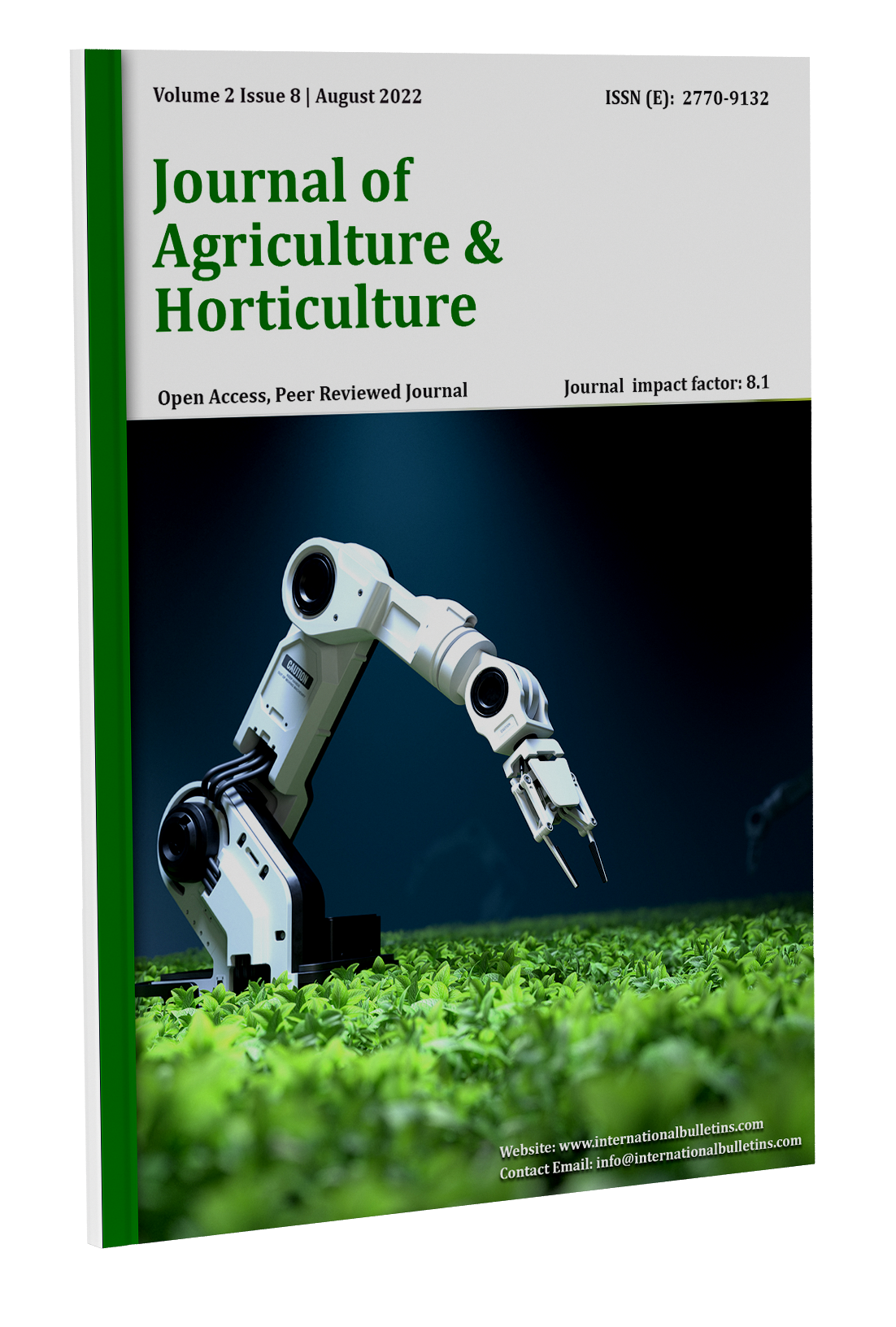 Том 5 № 8 (2025)Journal of Agriculture & Horticulture is an open access international American journal. Which publishes only original articles in its journal. The method of reviewing articles of this journal is Peer Review Double Blended. In this journal, we accept the titles of all the articles related to Agriculture & Horticulture and publish them in our journal only after getting them reviewed by the international reviewers. If the reviewer accepts the article for publication, then we send the production manager of the journal to publish all those articles and do not publish all such articles which are rejected in the peer review process. We not only publish the articles, but also do the work of getting them indexed in the International Indexing so that the author's research can be famous all over the world.